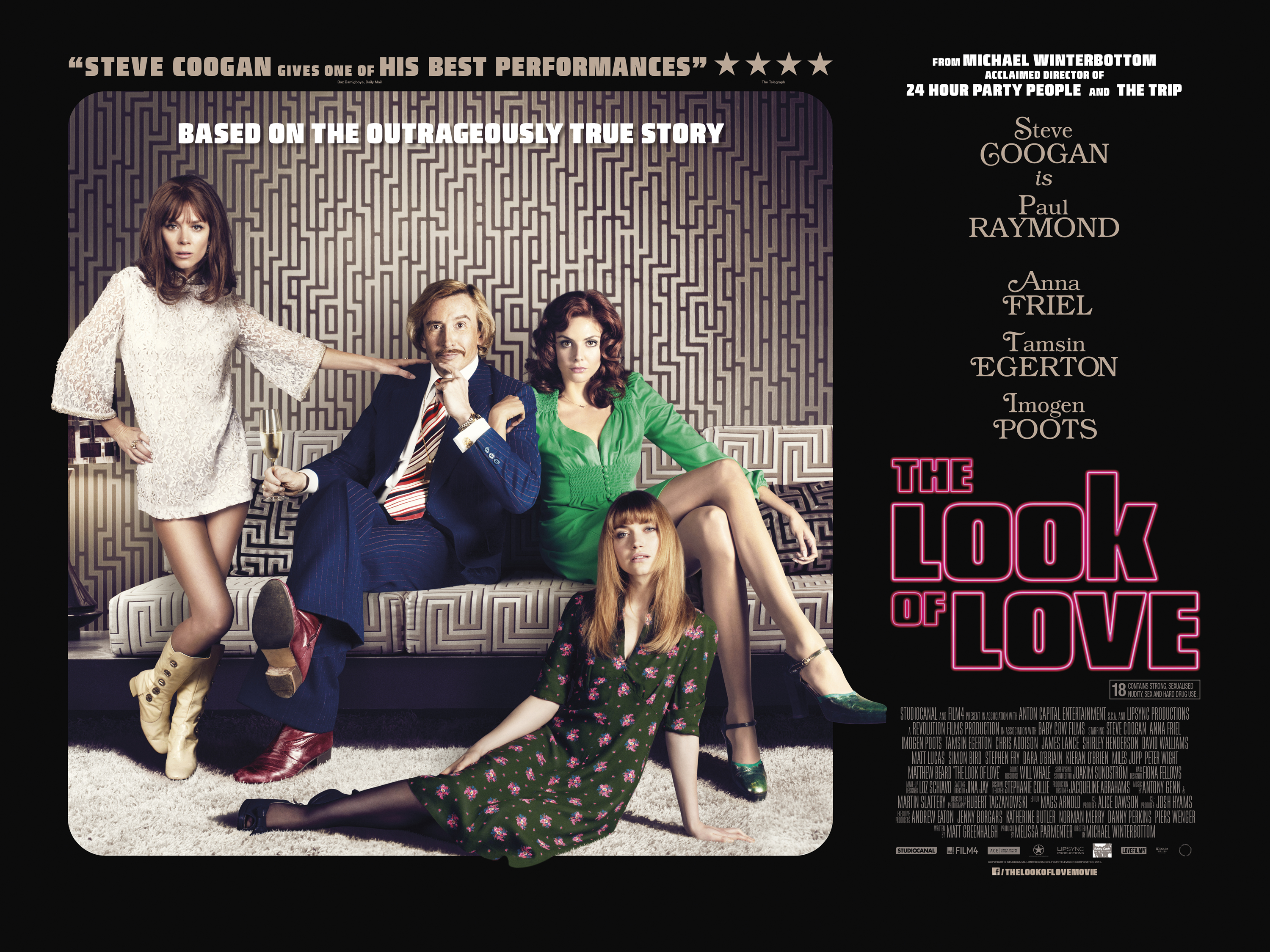 The Look of Love is a biopic about Paul Raymond (Steve Coogan), Britain’s richest man. Matt Greenhalgh wrote the script, with the bulk of the material coming from Paul Willetts’s biography, Members Only: The Life and Times of Paul Raymond. Paul Raymond was a self-made man, a British version of Hugh Hefner, Larry Flint, and Ringling Bros. all rolled into one. He came from Liverpool with only five bob in his pocket (as he proudly proclaimed) and built an empire based on the scintillating world of erotica. He started with strip-tease shows, moved into theater that featured a significant amount of unnecessary nudity, and then started publishing magazines both in the UK and the US. At one point, he says that his first gig was as a mind-reader and that his best trick was to read the minds of all the men who would pay to see a girl take her knickers off. He is the perfect example of rags to riches, a British Horatio Alger.