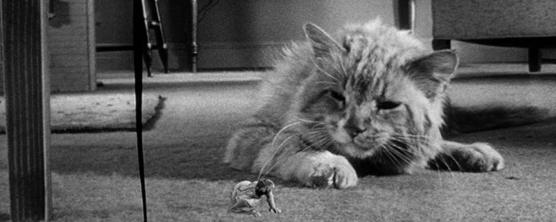 The doctors assumed that the cause of Carey’s shrinking is due to exposure to radioactivity—from an unusual cloud that passed by Carey while he was sunbathing—and the doctors aren’t sure if the effects are reversible. They try a radical treatment, but to no avail, and Carey continues to shrink. Carey loses his job and has to exploit his predicament for money, further emasculating himself in front of his wife, growing smaller before her very eyes.