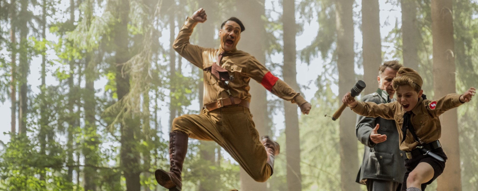 Jojo (Roman Griffin Davis) is a good little Nazi. Jojo’s only 10 years old, but his brown shirt is spiffy, his red arm badge is on straight, his arm is at the proper height for a good, strong heil—no flimsy heils here, thank you very much—and his bedroom walls are covered with posters of his hero: Germany’s Furor, Adolf Hitler.