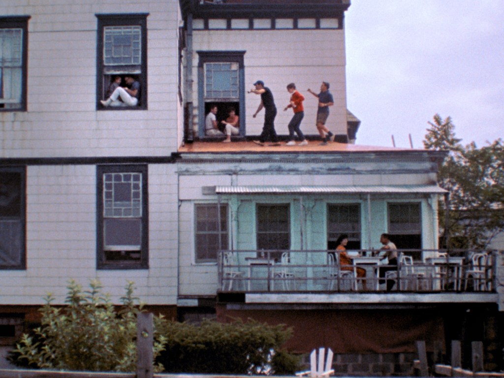 But on second viewing, it’s these moments where Stern’s doc soars. In addition to the fest, Stern photographs the America’s Cup yacht race just off the coast and people arriving for the show. It all comes easily and unexpectedly. A jaunty Dixieland number gets teenagers dancing on the rooftops of shingle-style houses that have seen better days. Downstairs a waiter wrestles with a case of Rheingold beer. Sailboats cut across the water, and everyone seems to be having a dandy time.