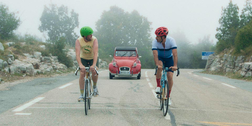 Written by Covino (who also directs and plays Mike in the film) and Kyle Marvin (who plays Kyle), The Climb is a buddy comedy that doesn’t play the way you expect. The movie opens with Mike and Kyle on a bike ride in France, on a steep hill climb, with Mike revealing he’s having an affair with Kyle’s fiancée. Even better, the scene unfolds in one unbroken 10-minute shot—an adaptation of Covino and Marvin’s initial short, also entitled The Climb. That Climb went to the 2018 Sundance Film Festival and netted Covino and Marvin plenty of attention: Attention that presented opportunity.