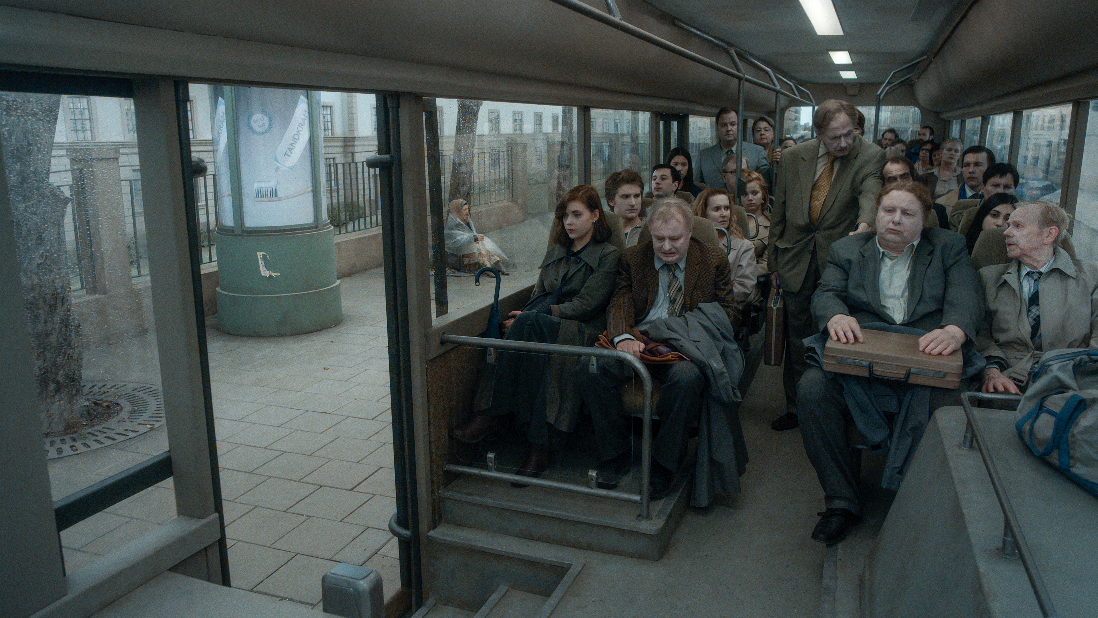 And there’s a lot of subversion to About Endlessness. In one scene, a young father is trying to get his infant to smile for a photo. He lifts the baby in the air with a slight toss and the kid giggles. It’s a sweet moment, but Andersson and cinematographer Gergely Pálos frame the shot so that your eye can’t help but notice all the hard, concrete angles surrounding the father and child. They’re just steps leading to a church, but they look so menacing you hold your breath and wait for something to go wrong. Nothing does, though, and when something truly terrible does happen—that’s another scene entirely—Andersson cuts away before we can gather any real context or deduce what transpired. It’s as if he cannot bear to watch.