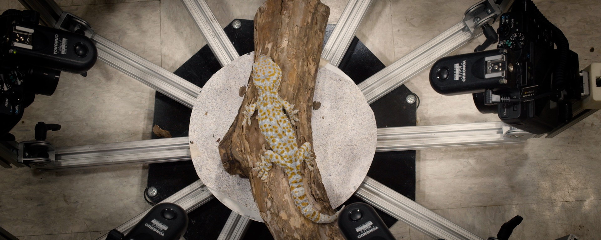 A lizard is photographed from 360 degrees. The lizard will soon become part of a computer archive that is recreating digital simulations of every animal on the planet, starting with the ones most likely to become extinct. For whom is this lizard being digitally preserved? Future generations that will never have the chance to gaze upon a real one? Or for future technologies that will be able to do things with digital simulations that we can only dream of?
