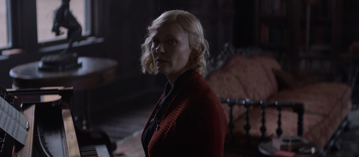 As revealed in the dialogue, Phil is a rich kid, educated at Yale—“Does he yell at the horses in Greek or Latin?” the governor jokes—and talented in ways far surpassing those living at the Burbank Ranch and in the nearby town of Beech. When Rose (Kirsten Dunst) moves in with the Burbanks, husband George (Jesse Plemmons) purchases her a baby grand piano so she can entertain guests. Rose used to accompany silent pictures, but that was a long time ago, before her first husband, and she’s out of practice. “I know only tunes,” she says.