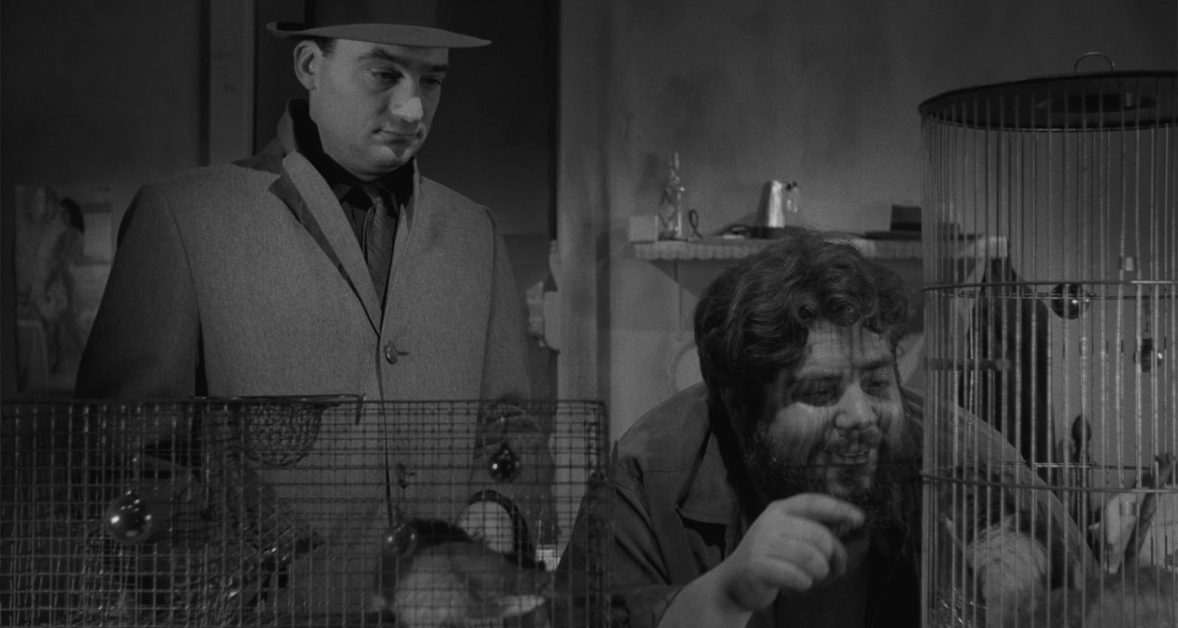 Baron plays the hit man, Frank Bono from Cleveland, Ohio, as a man uncomfortable in his own skin. Baron had originally cast Peter Falk, then a somewhat unknown actor, in the lead, but Falk took a role in Murder, Inc., so Baron cast himself in the role of Bono because he was “the best and cheapest actor I could afford.” Money and resources were tight, and, in some instances, Baron had to double as another hit man chasing himself in the film’s climax.