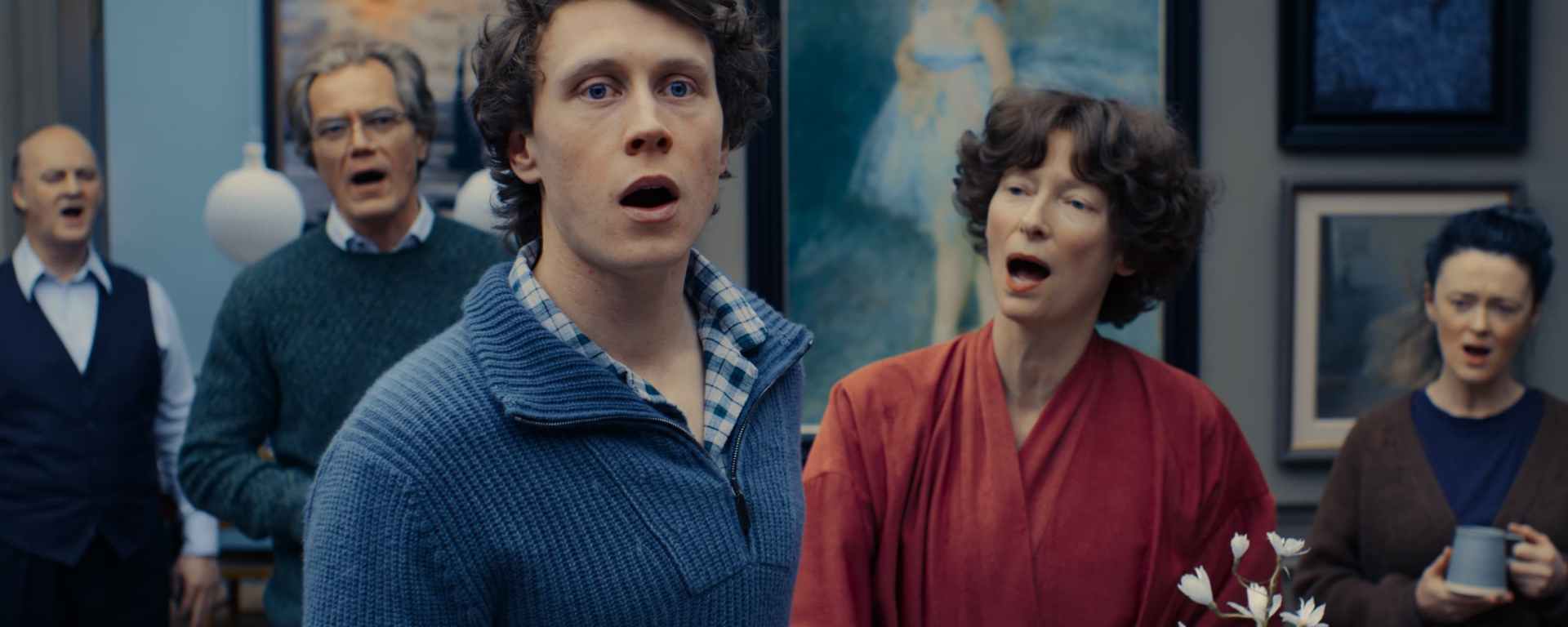 It’s been 25 years since the world ended. Some sort of climate catastrophe is what did it, and the only survivors we know of are Father (Michael Shannon), Mother (Tilda Swinton), Son (George MacKay), their Doctor (Lennie James), Butler (Tim McInnerny), and Friend (Bronagh Gallagher). They survive by living in an expansive bunker below the surface—Father was a successful oil and gas man—where they while away the days recreating and revising the past through art, memoir, and dioramas. They also sing.