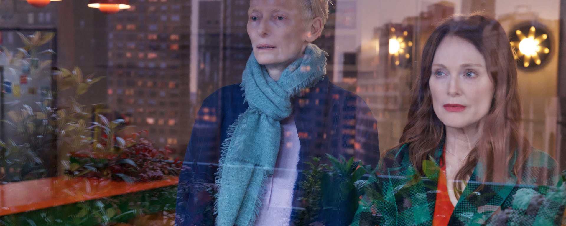 I’ll explain. In the first 30 minutes, the terminal woman, Martha (Tilda Swinton), explains her plight—ovarian cancer—and the backstory of a one-time lover to her friend Ingrid (Julianne Moore). But she narrates with such detachment that you can’t believe Swinton is capable of giving a performance this bland. Ditto for Moore, whose line readings have all the subtlety of community theater.