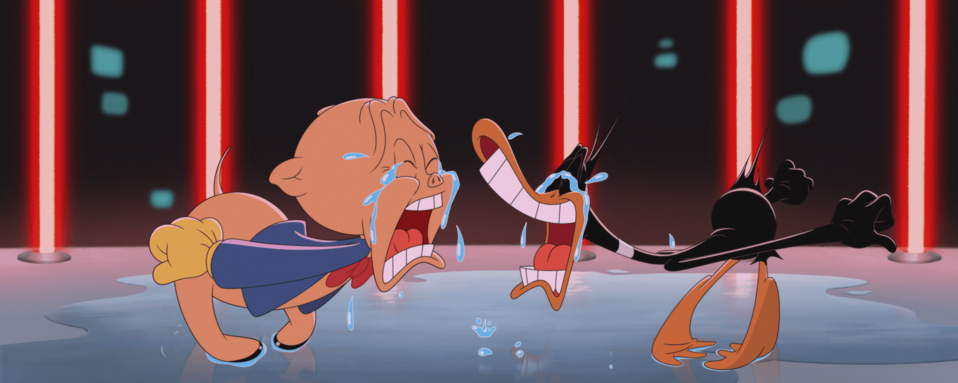 Eric Bauza voices both Porky and Daffy, who are raised by the benevolent Farmer Jim (Fred Tatasciore), a Green Giant-esque figure with a frozen face and occasional human lips. He dies and leaves the farm to Porky and Daffy, charging them with maintaining it. They don’t, and the home is condemned by a government official, Mrs. Grecht (Laraine Newman), a squat woman with a cartoonish-sized chest to balance out her equally bulbous rear.