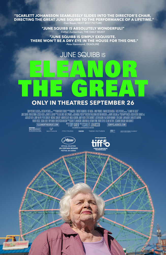 And Squibb makes everything in Eleanor the Great plausible and comical. She has a way of gliding through situations and conversations with quick wit that renders others dumbfounded. One hapless grocery store clerk (Tristan Murphy) is told to fetch, and does. Eleanor’s daughter gets an unprovoked henpecking about who got what in the divorce. Both instances are funny, but not nearly as funny as the scene where Nina takes Eleanor on a mystery date and blindfolds Eleanor with a comical sleeping mask. Squibb exaggerates her body movements to match the eye mask’s expression with such expertise that it’s little wonder Scarlett Johansson built her feature-length directorial debut around her.